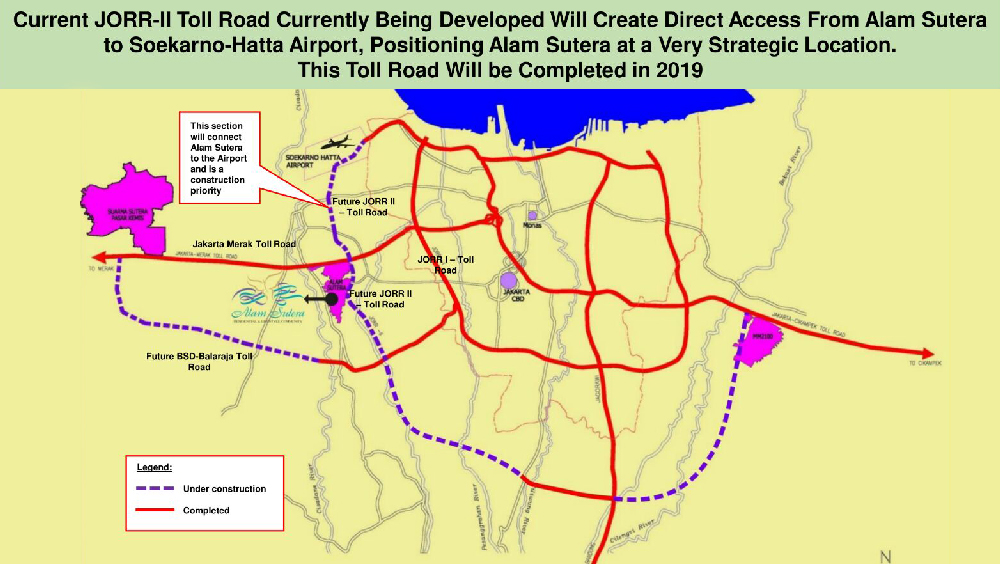 Pemerintah akan membuka akses tol baru Soekarno Hatta- Alam Sutera. Bila akses tol ini resmi dibuka 2019, 0maka jarak tempuh Alam Sutera ke bandara dapat ditempuh hanya dalam waktu 10 menit. Harga properti di Alam Sutera pun diprediksi akan ikut naik jauh.